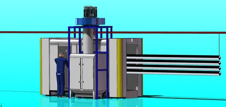 Cabine de revêtement en poudre à double station